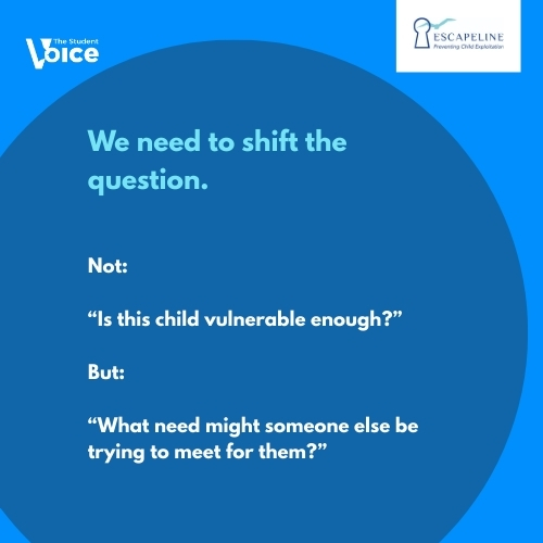 The question we must ask is not, “Is this child vulnerable enough?” It is, “What need might someone else be trying to meet for them?”